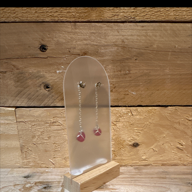 Silver red seaglass drop earrings