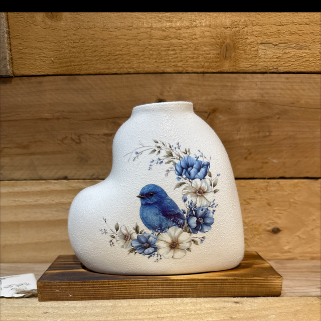 Blue Jay Heart Vase