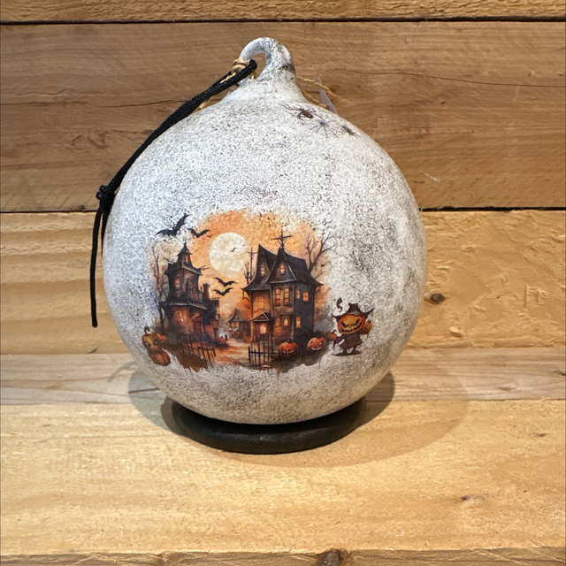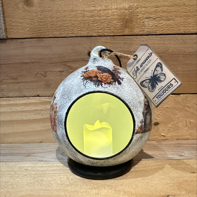 Decoupage Halloween bauble on a stand. Does not include the light.