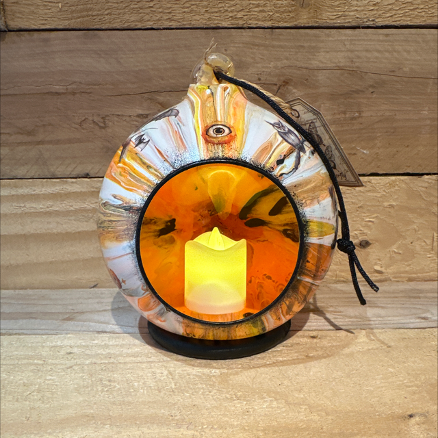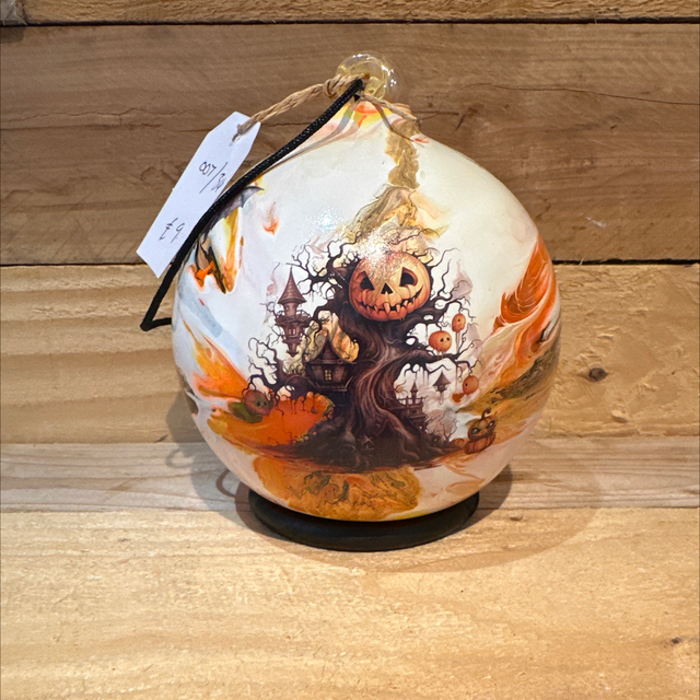 Decoupage Halloween bauble on a stand. Does not include the light.